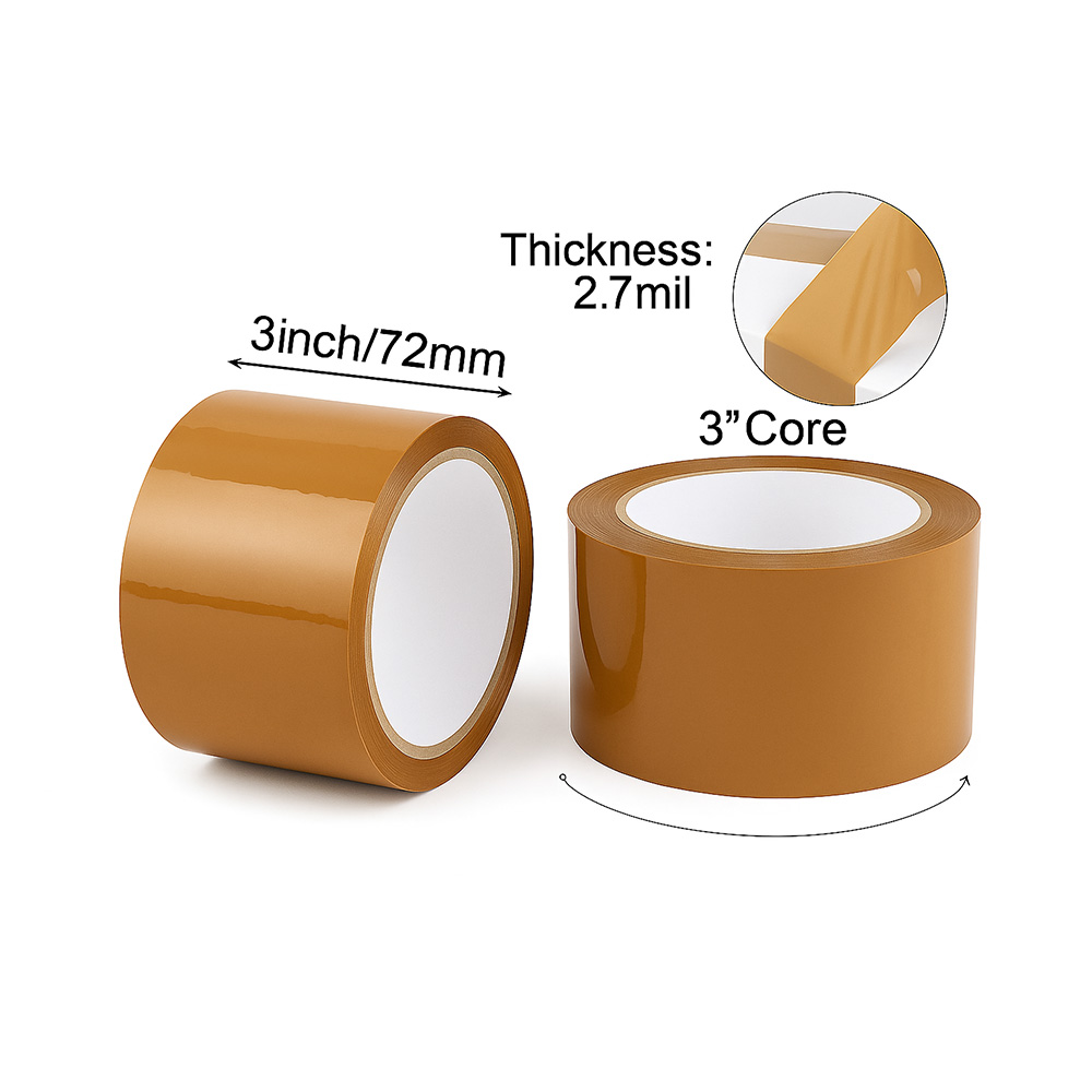 Premium 42 micron 3 inch BOPP adhesive packaging tape with strong adhesive, available in brown & transparent colors.