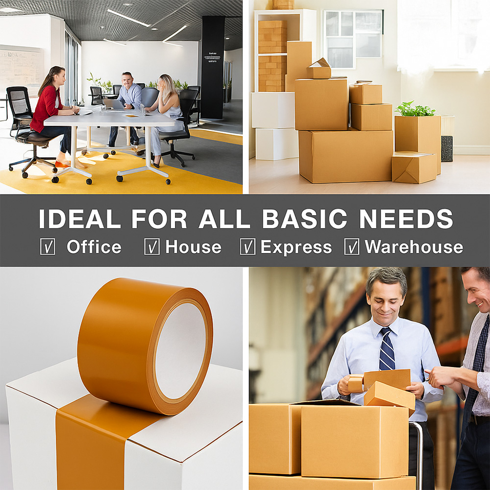 Premium 42 micron 2 inch BOPP tape (heavy-duty pack) with high adhesive, available in brown & transparent colors. Perfect for warehouse, bulk packaging & courier dispatch.