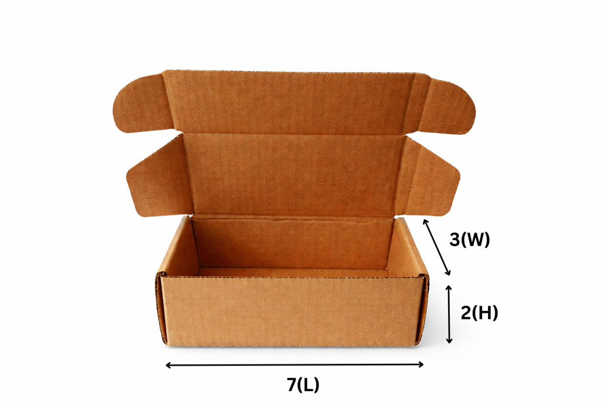 Durable 3 Ply brown corrugated flap / mailer box (7x3x2 inches) for e-commerce, courier & shipping. Compact size perfect for jewellery, accessories, skincare & lightweight items. Eco-friendly carton for online sellers.