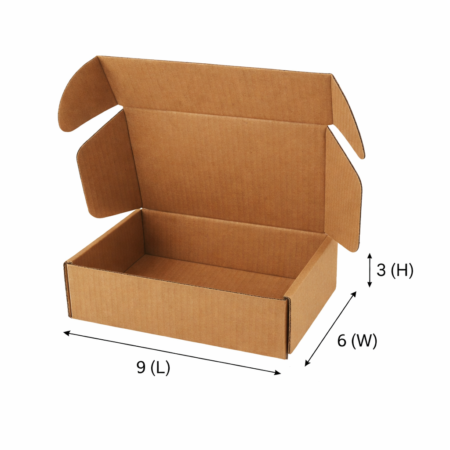 Durable 3 Ply brown corrugated flap / mailer box (9x6x3 inches) for e-commerce, courier & shipping. Compact size perfect for jewellery, accessories, skincare & lightweight items. Eco-friendly carton for online sellers.