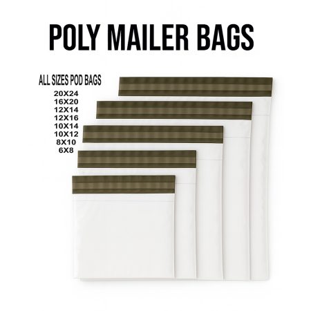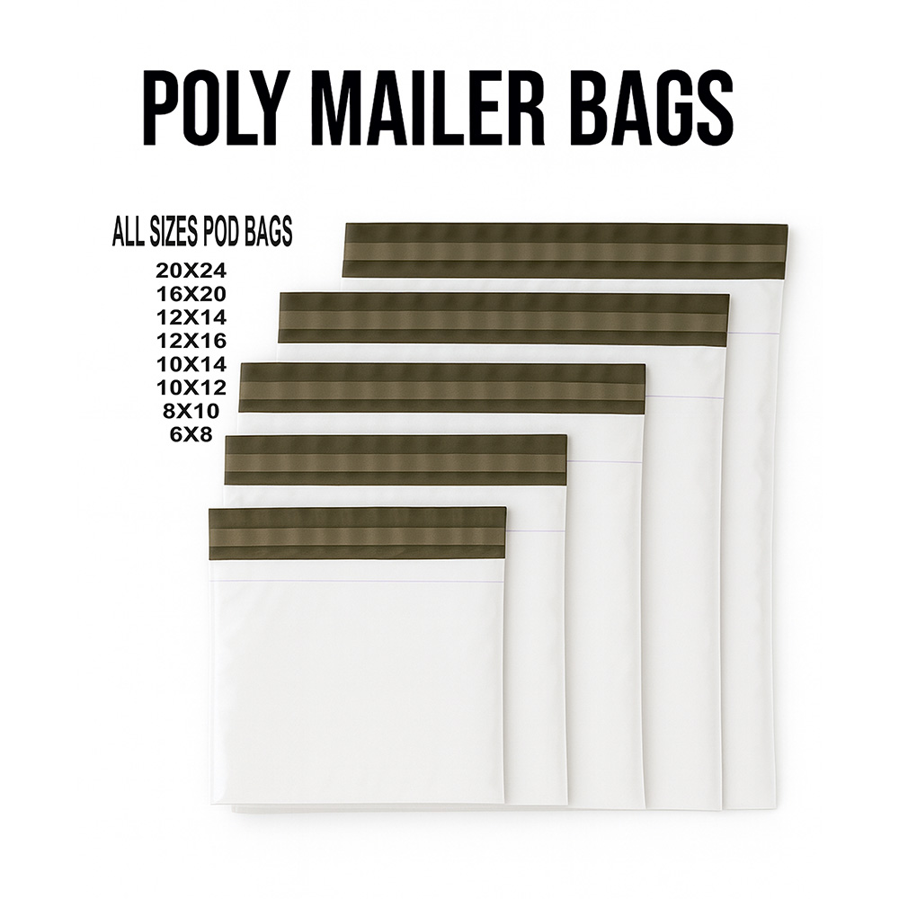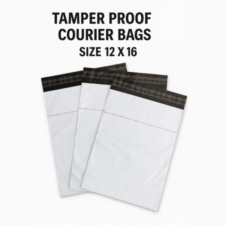 Large 12×16 inch POD courier bag, 55 microns thick, ideal for fashion apparel & bulkier shipments. Features tamper‑proof flap & transparent POD jacket for invoices.